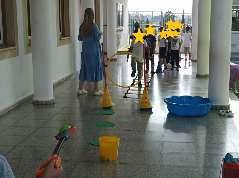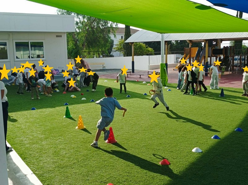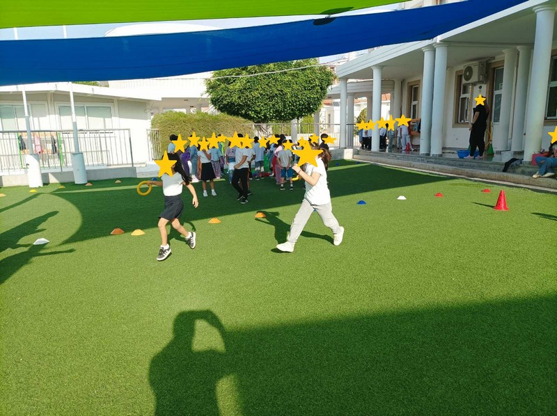 Τα παιδιά της Α' τάξης επισκέπτονται το νηπιαγωγείο και παίζουν διάφορα παιχνίδια στην αυλή με τους φίλους τους από το νηπιαγωγείο