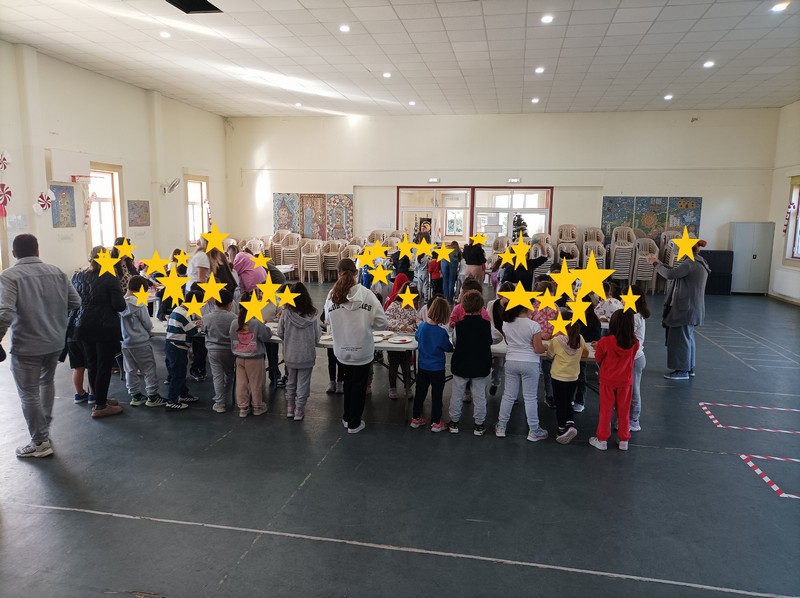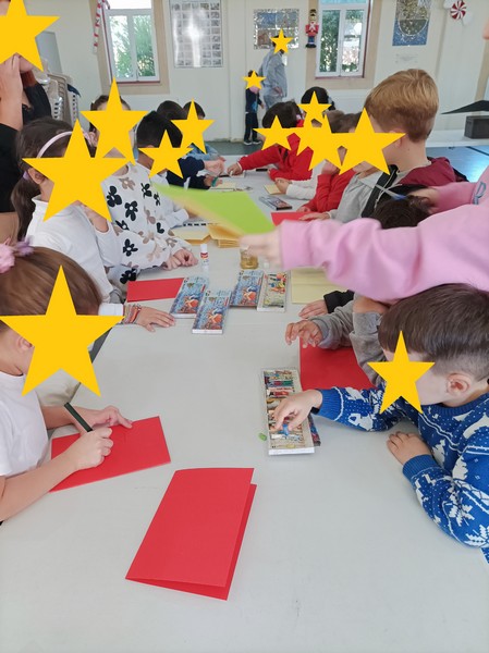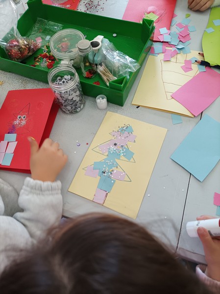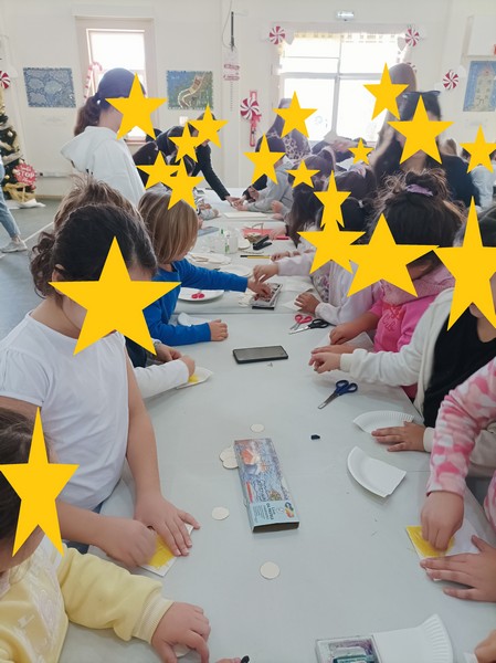Τα παιδιά της προδημοτικής τάξης και της Α' τάξης εργάστηκαν μαζί και έφτιαξαν χριστουγεννιάτικες κάρτες, κατασκευές και ομαδικές ζωγραφιές.